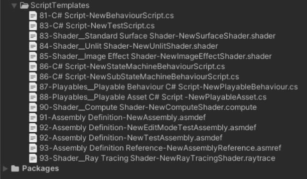 一旦您有了一组您喜欢的脚本模板,复制您的ScriptTemplates文件夹到一个新项目,并根据您的具体需求进行定制。您也可以更改应用资源中的原始脚本模板,但请谨慎行事。这会影响使用该版本Unity的所有项目。