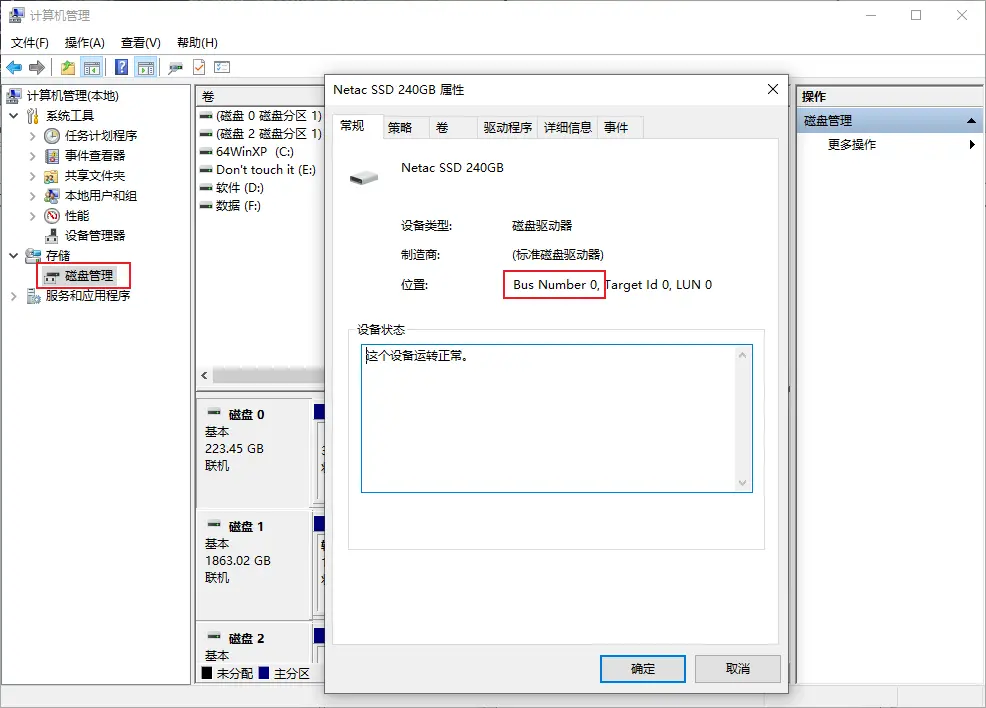 注: 也可以在’计算机管理->存储->磁盘管理’中查看别识别为移动硬盘的Number号, 这样可以不用输入那么多的数字