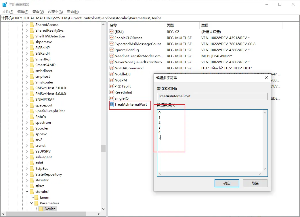Step2: 进入HKEY_LOCAL_MACHINE\SYSTEM\CurrentControlSet\Services\storahci\Parameters\Device