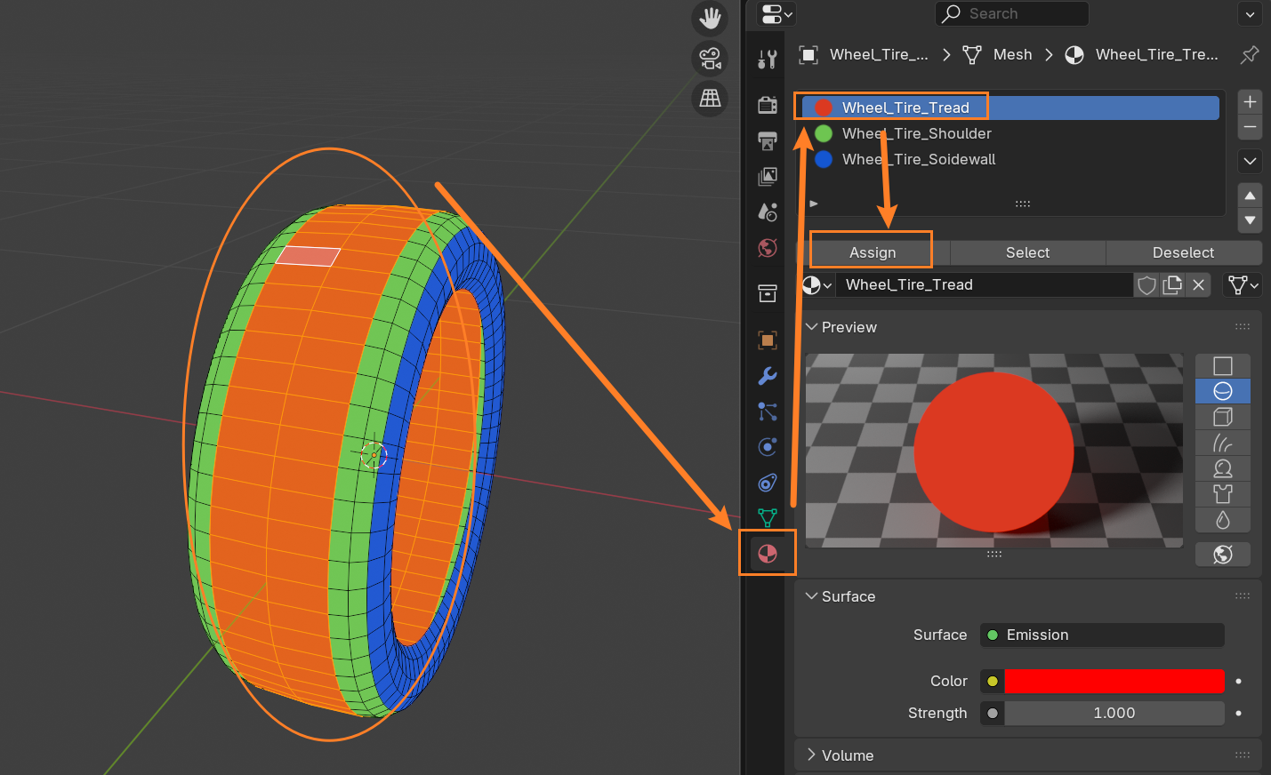 - 用材质球分区后, 将材质选择成Emission, 渲染的时候把右上角的渲染模式选择成