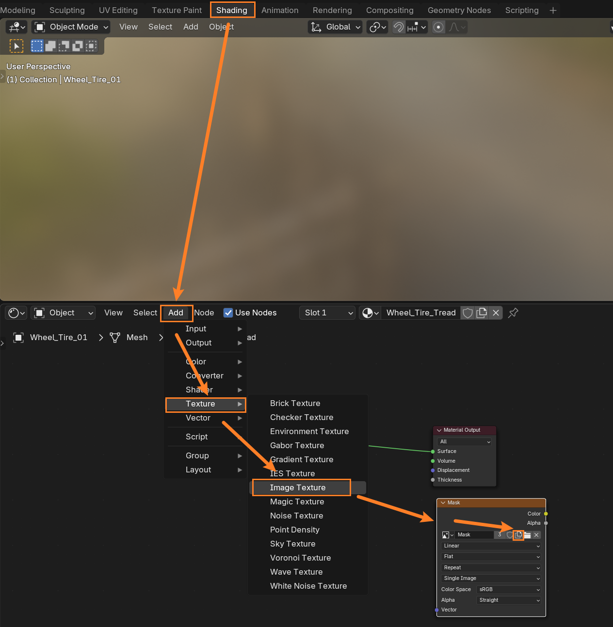 ImageTexture节点, 在节点中新建一张Texture, 保持节点激活