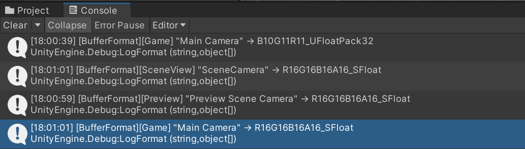 - Game相机: R16G16B16A16_SFloat