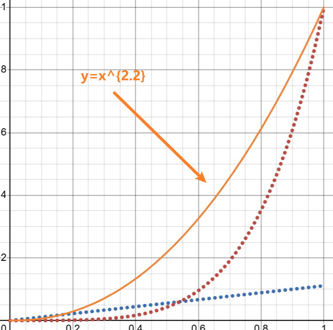 - 免费版 $k = 12.92$ ,如果曲线要连续对应的 $x=0.04045$ , 但这个标准仅仅保证曲线连续, 但斜率会不连续.